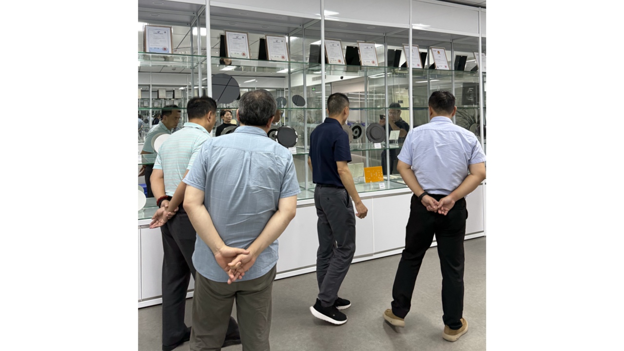 我司董事长陈闻杰先生陪同王秘书长一行参观我司展厅、介绍我司产品,展示了我司产品在精密陶瓷核心零部件领域的前沿性。我司多次攻克“卡脖子”难题,研发出多种型号静电卡盘、真空吸盘及氮化铝陶瓷发热体,稳步推进半导体设备核心陶瓷零部件的国产化替代。
